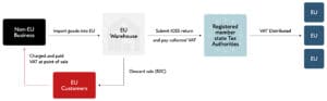 When an IOSS registered business sells to an EU consumer, they will charge and collect the VAT at the point of sale based on the customers’ EU country VAT rate. Every month, the business will submit an IOSS return to their registered member state detailing all the cross-border sales to EU consumers. The collected VAT is paid to the tax authority where the seller is registered. When the goods arrive at EU customs, they are cleared quickly because VAT has already been paid. The member state which the business has an IOSS registration in, are responsible for distributing VAT paid as result of the IOSS return.